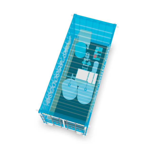 - Instalación completa en contenedor estándar de gran volumen.